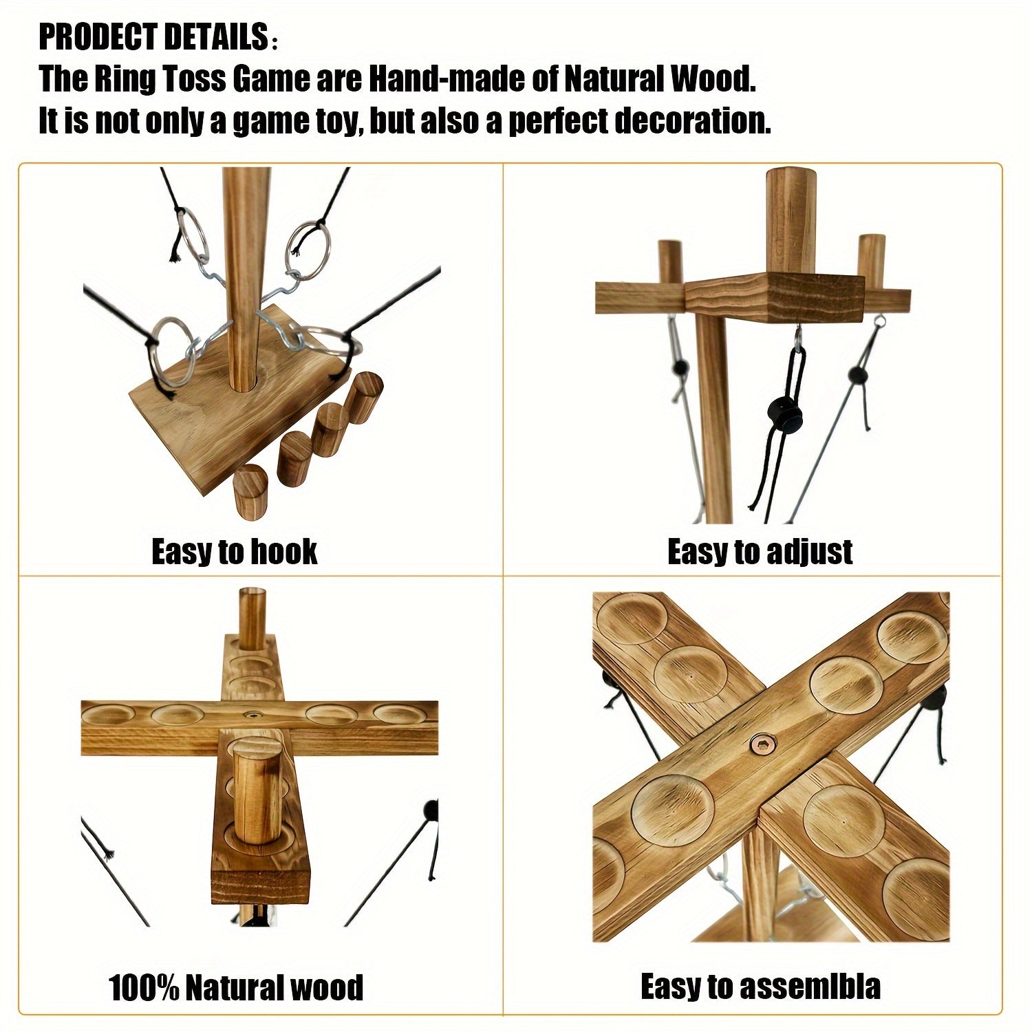 Amusez-vous entre amis avec ce jeu de lancer d'anneaux en bois. Parfait pour soirées, fêtes et activités outdoor, il combine adresse et convivialité pour des moments inoubliables.